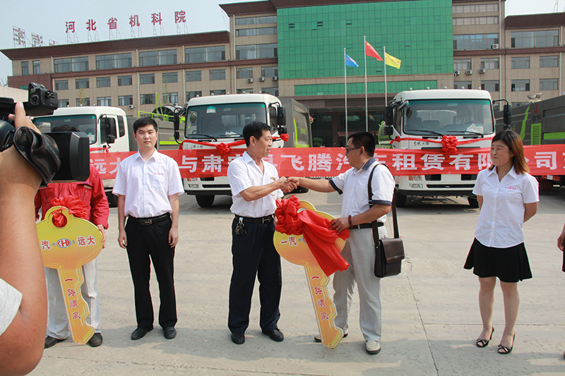 2017年7月3日河北远大汽车和沧州市肃宁县飞腾汽车租赁有限公司的交车仪式照片